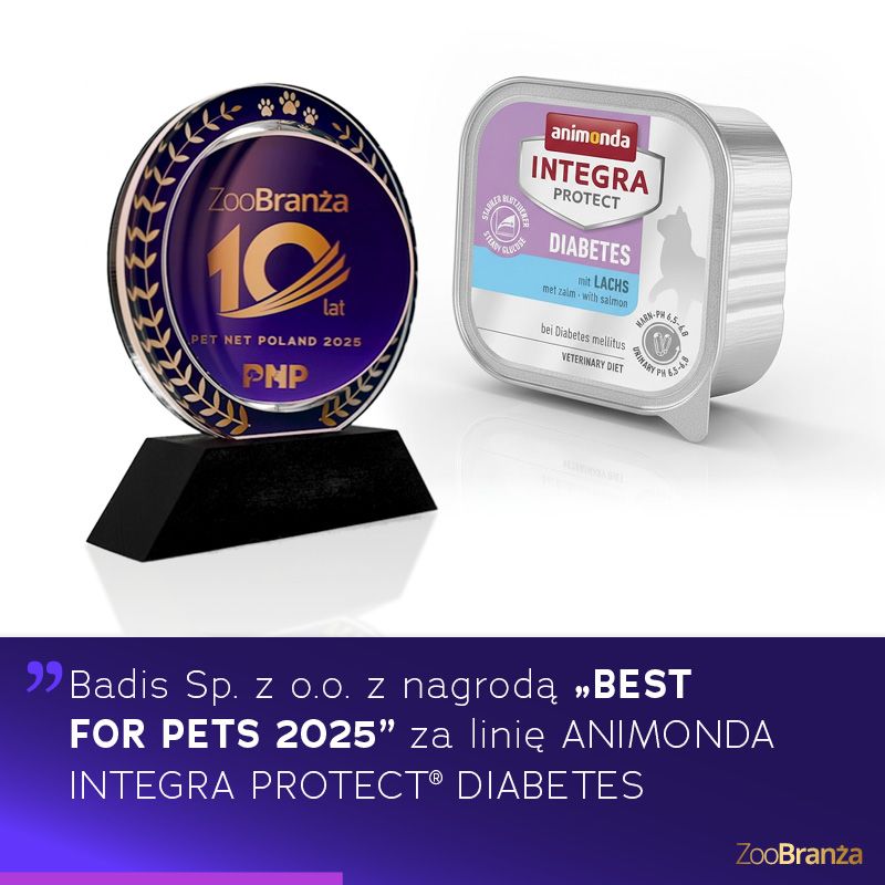 Z radością informujemy, że firma Badis sp. z o.o., wyłączny dystrybutor marki ANIMONDA w Polsce, została uhonorowana prestiżową nagrodą „Best for Pets 2025” w plebiscycie organizowanym przez Pet Net Poland oraz magazyn ZooBranża.