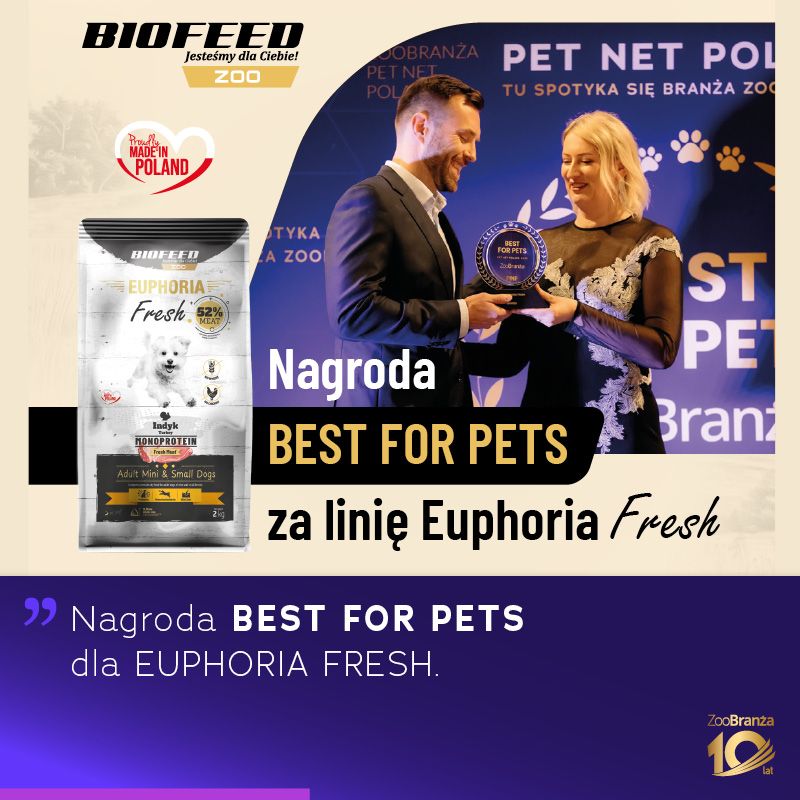 Podczas uroczystej Gali Best for Pets nagrodę zdobyła linia EUPHORIA FRESH. To ważne wyróżnienie i sygnał, że jakość BIOFEED została zauważona i doceniona przez ekspertów.